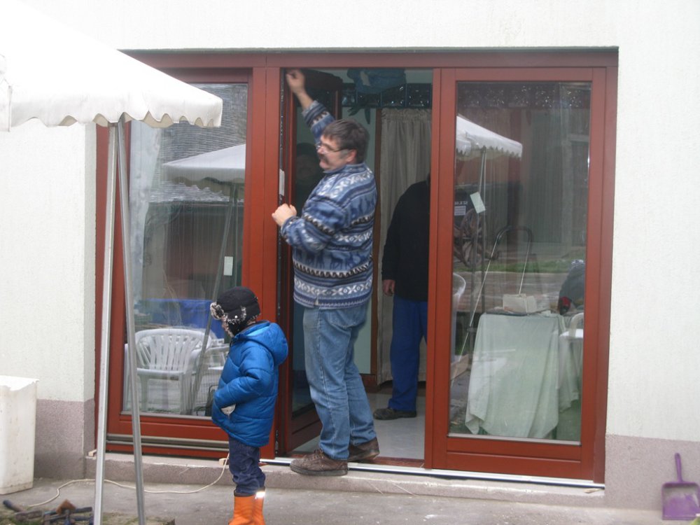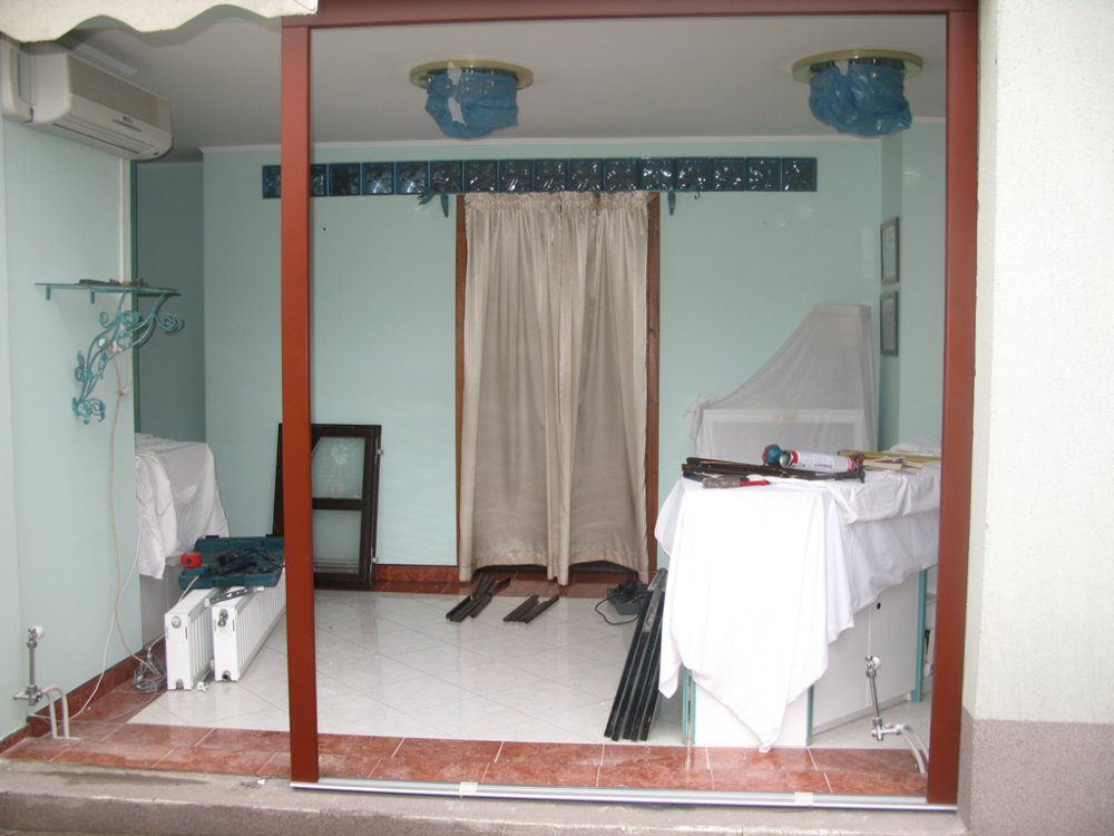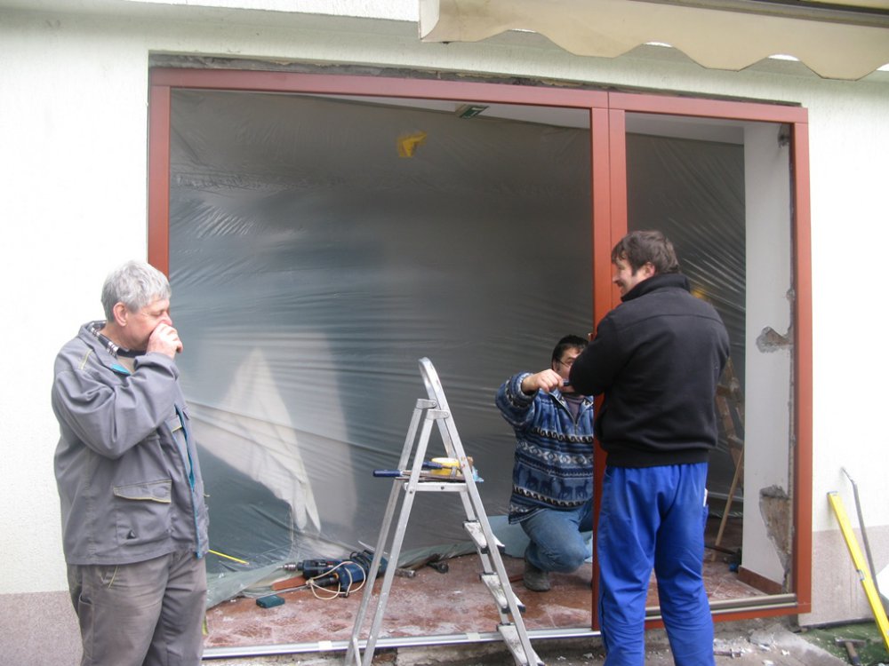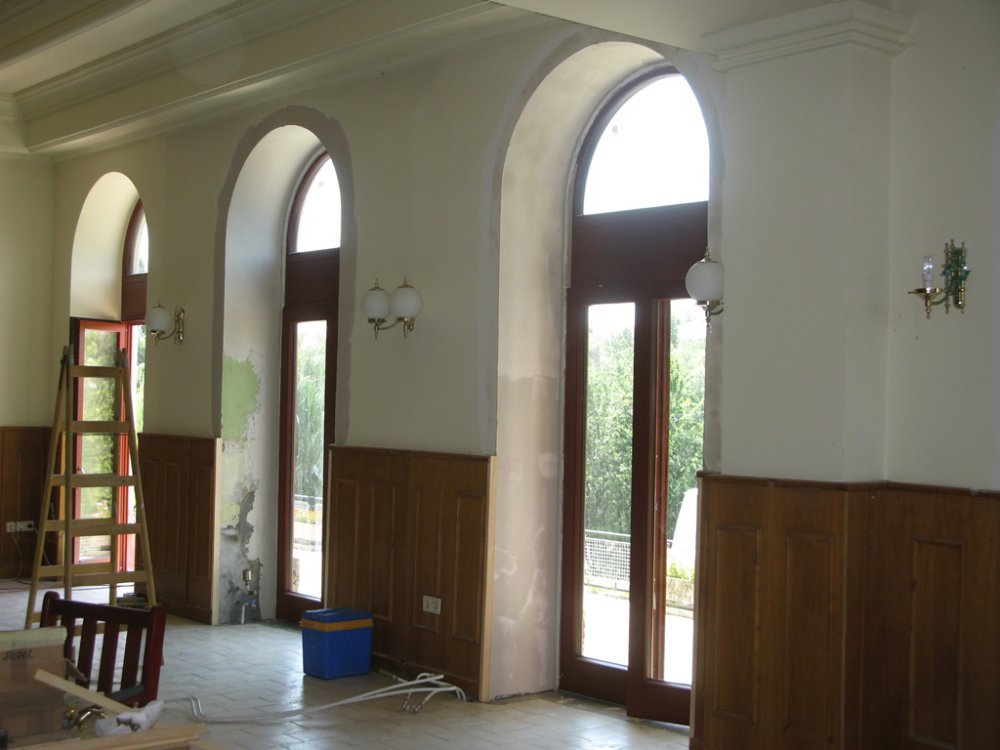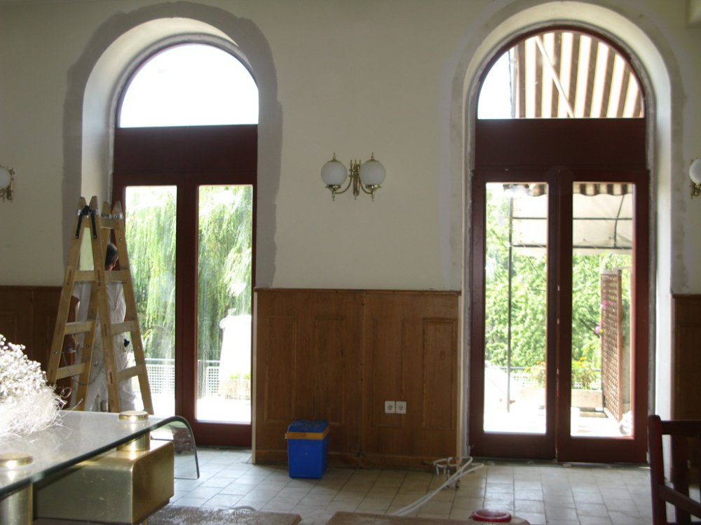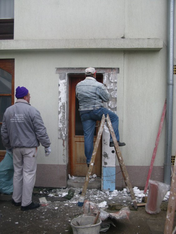 A küszöb alatt speciális beton került elhelyezésre. A régi nyílászárók kivétele után a falfelület javítása megtörtént.