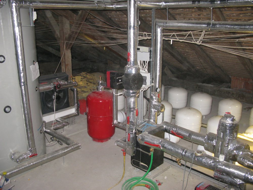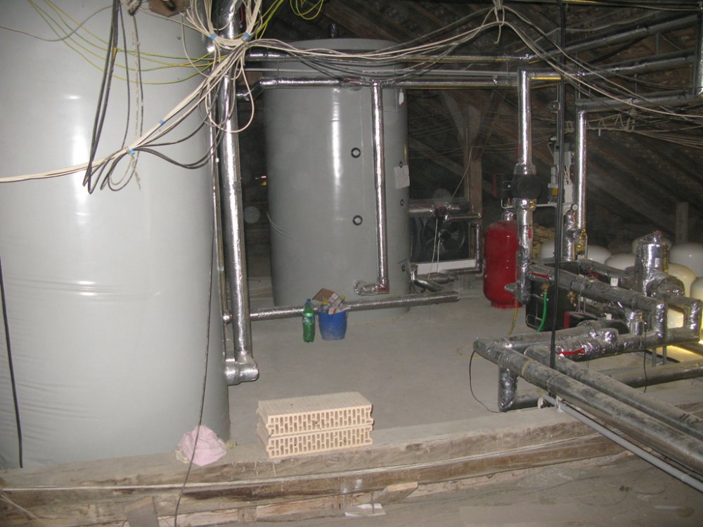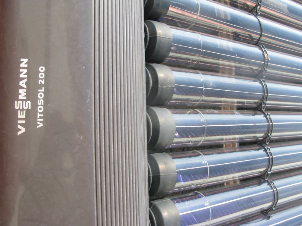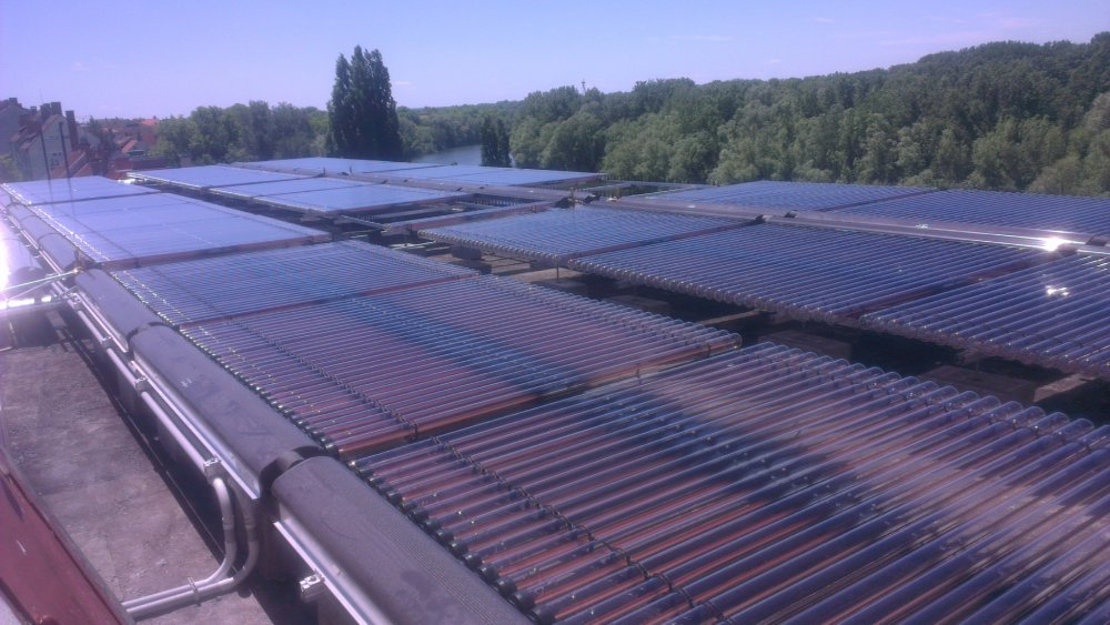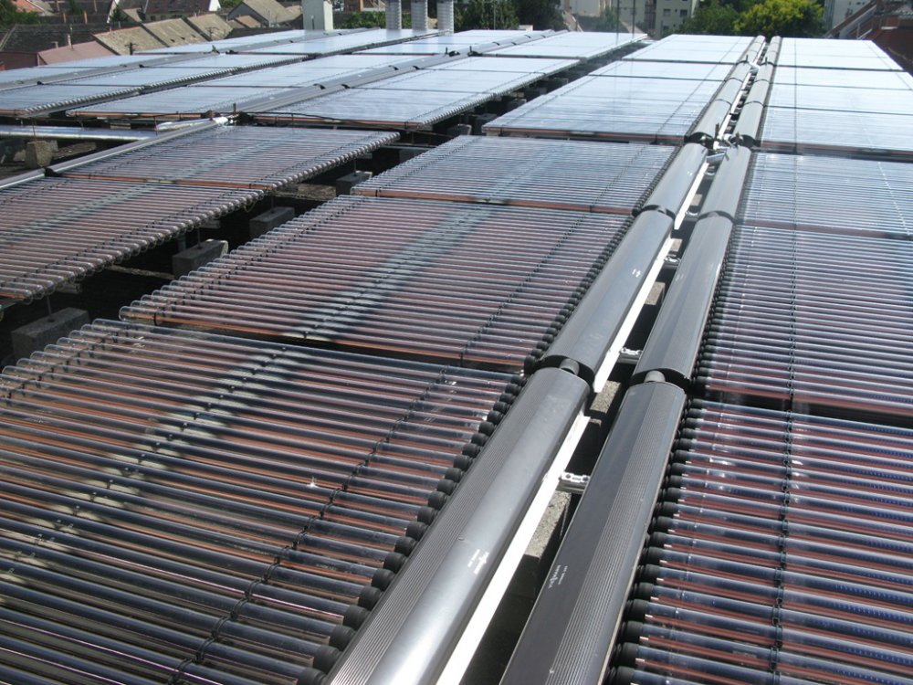 A negyedik ütemben a lapostetőn elhelyezésre került 54 db Viessmann Vitosol 200-T típusú vákuumcsöves napkollektor. A kollektorok a padlásra elhelyezett 4 db 3000 literes puffertartályok fűtési vizét fűtik. A puffertartályokkal az első emeleti HMV tárolót fűtik fel. A szolár rendszer segítségével az épület HMV szükséglete és a wellness melegvíz ellátása biztosítva van. A tetőtéri hőközpont és a kazánház végleges kialakítása után el lett végezve a szükséges HMV, szolár és fűtési nyomáspróba.